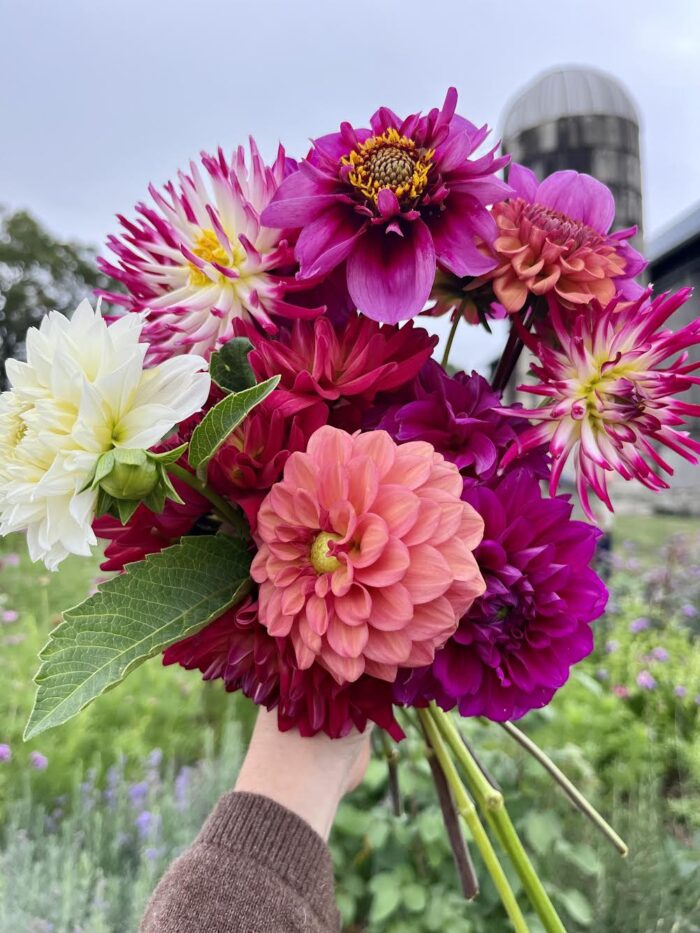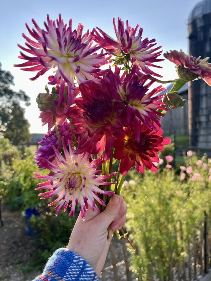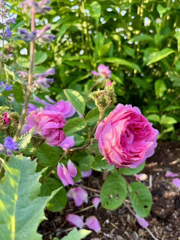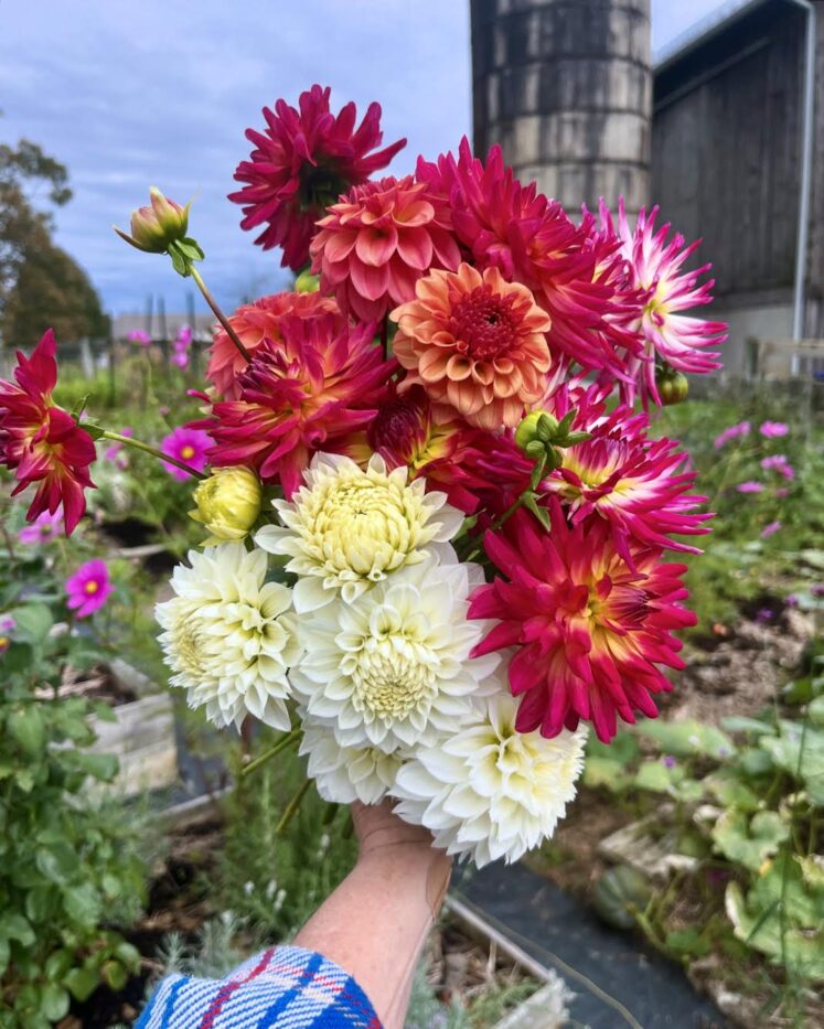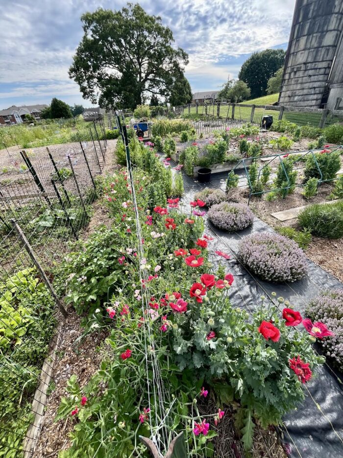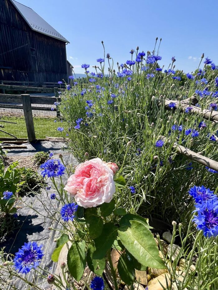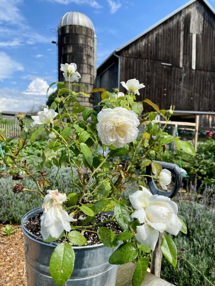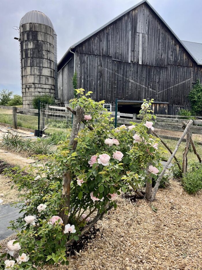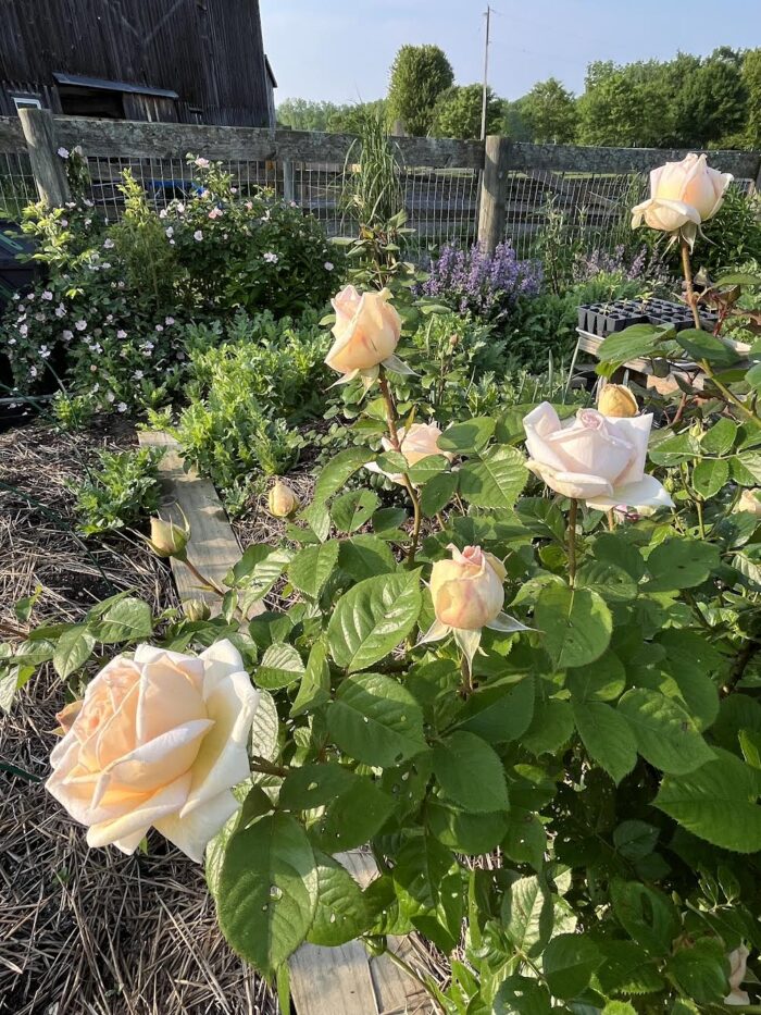 2024: The big news of 2024 was when a foal was born in the field of the farm next door! It was so exciting meeting her and watching her grow up that summer. You can read more about these rare types of horses HERE. Also, when a neighbor had too many dahlia tubers and needed to get rid of some, we took them and tripled the size of our cut-flower dahlia patch. (We also tried overwintering them in the ground again that year–as we had done successfully the year before–but lost too many to freeze and I won’t do that again.) We started growing the best lavender cultivar ever. It’s called ‘Phenomenal’® and it truly lives up to the name. Feeling frustrated by the lack of sunlight in our home garden to grow many of my roses successfully, I moved dozens over to the allotment.