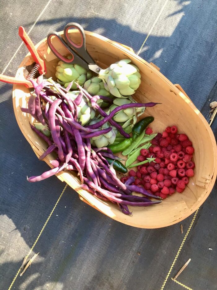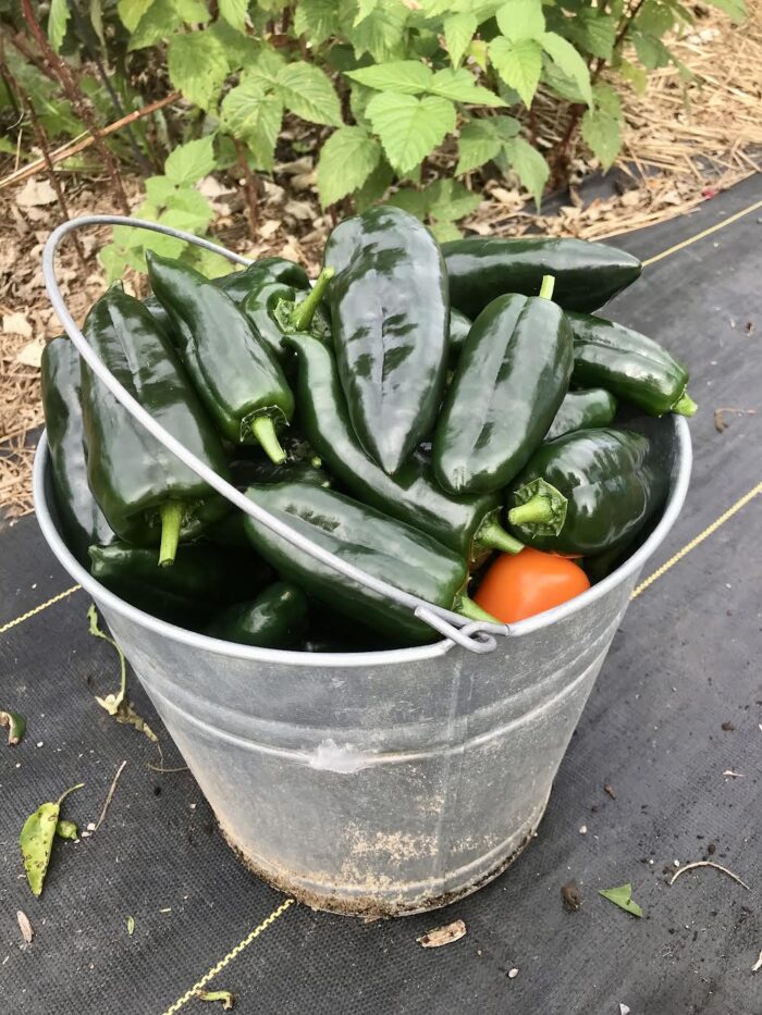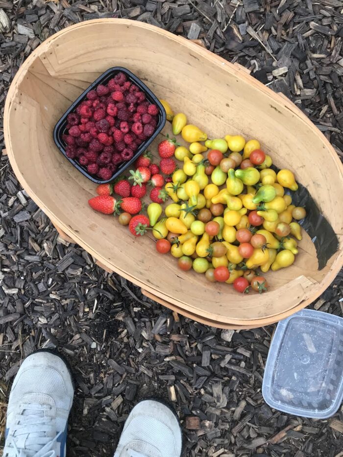 2021: This was quite honestly the last time we had a really epic harvest. The weather was perfect for tomatoes and peppers and we went into that winter with a lot stored in our freezer. We also grew lots of raspberries, artichokes, onions, potatoes, beans, cucumbers, herbs and even melons! We continued to build good soil by applying a thick layer of compost to the garden in the spring and then again in the autumn. (Note: although we make our own compost, our community garden also gives us free compost as part of our annual fee.)