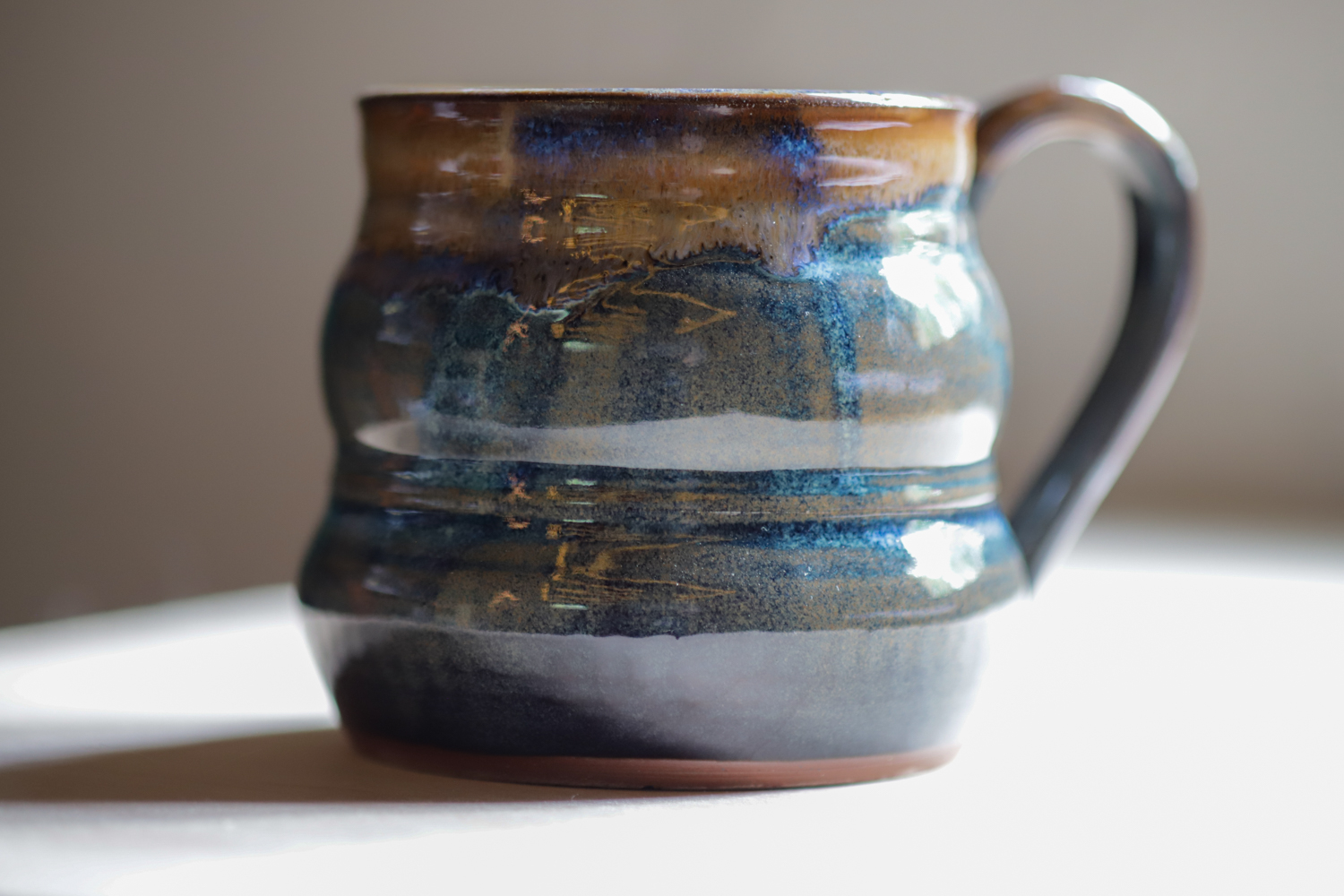Wheel-Thrown Medium Bubble Mug in “Dark Denim and Amber” Glaze