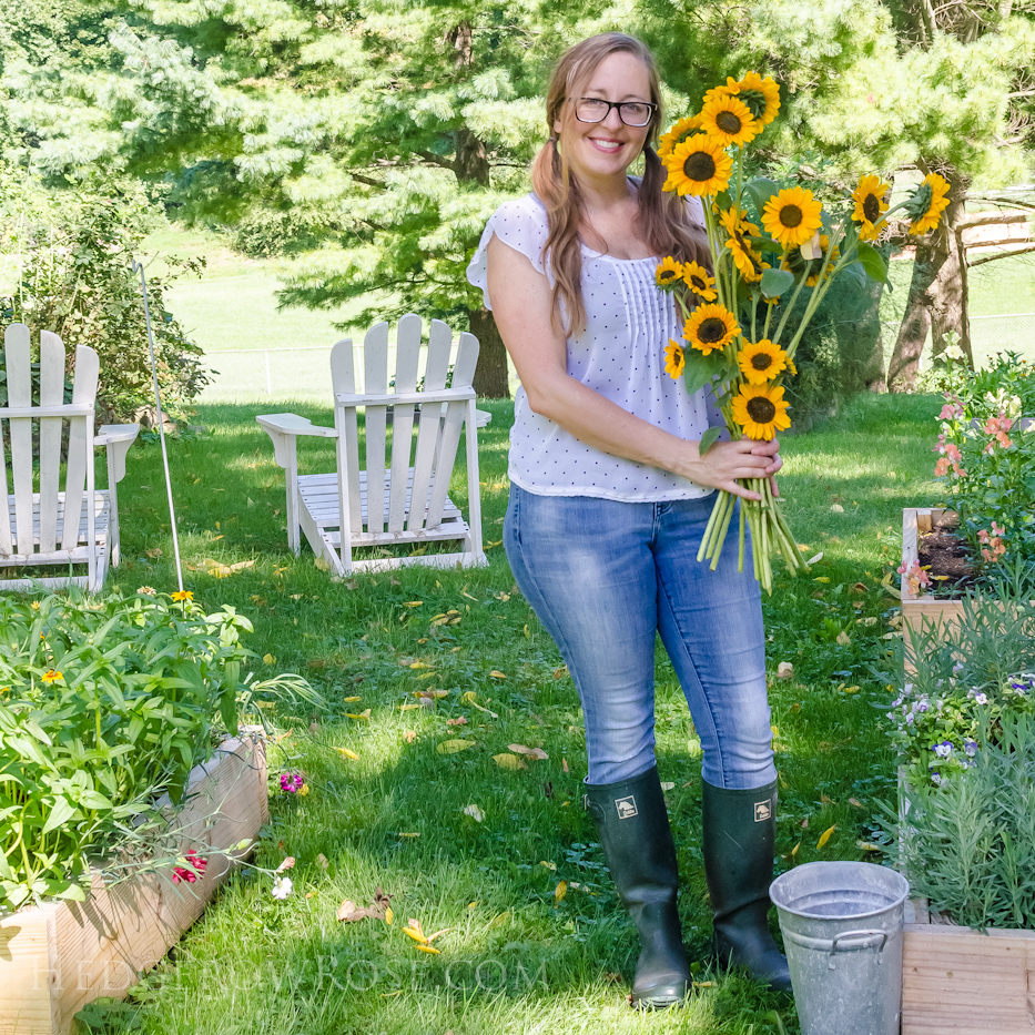 Me in our garden at the very beginning….with ‘Soraya’ sunflowers Photo by Fresh Fish Pottery