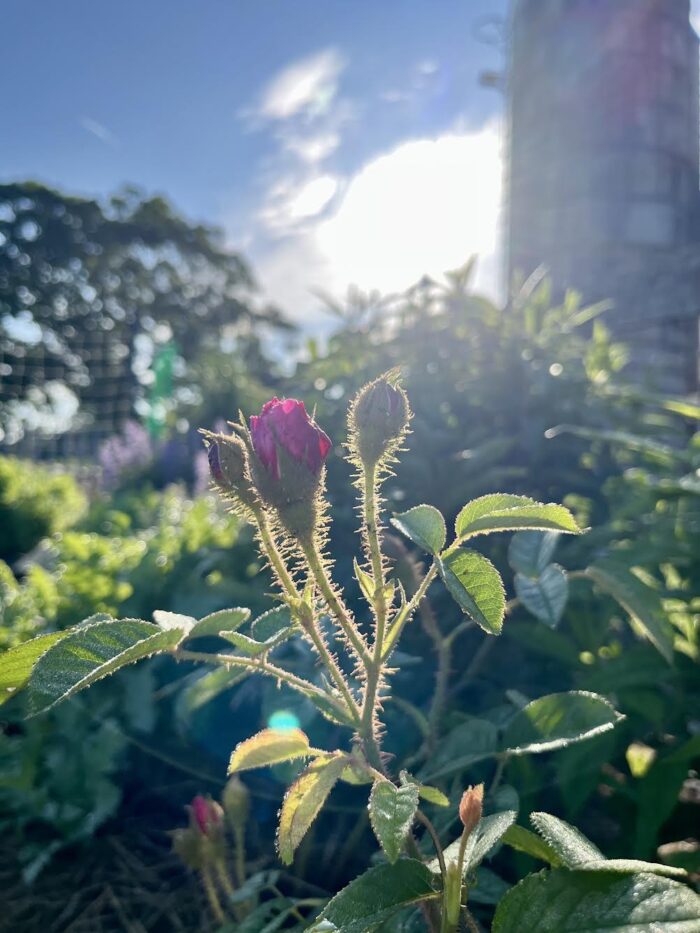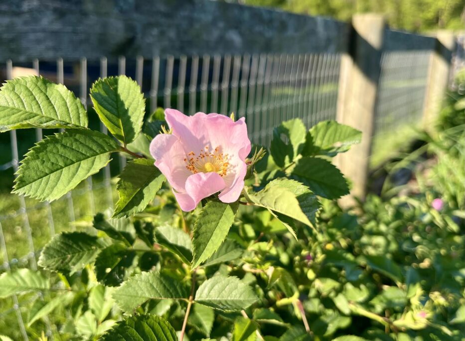 …Rosa spinosissima, which in our garden is always the first to flower. You would think that for such a delicate looking bloom the fragrance would be light but that couldn’t be further from the truth. The scent from this rose carries across the garden, honey-sweet and welcoming both to humans and bees!