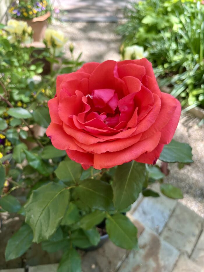 In addition to Vanessa, I also came home with ‘Fragrant Cloud’ / TANellis, a rose I had no business purchasing as apparently she is not hardy to my zone and gets blackspot easily. What was I thinking?! Well, I’ll tell you, even if I only get one season out of this rose, it’s already been worth it. The blooms are absolutely massive and live up to their name as the fragrance is superb. {ETA: I forgot that years ago, I included Fragrant Cloud in my post on Fragrant Roses if you fancy taking a look.}
