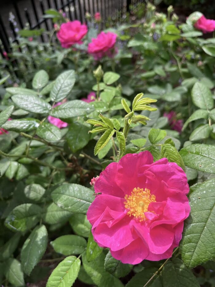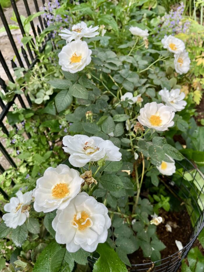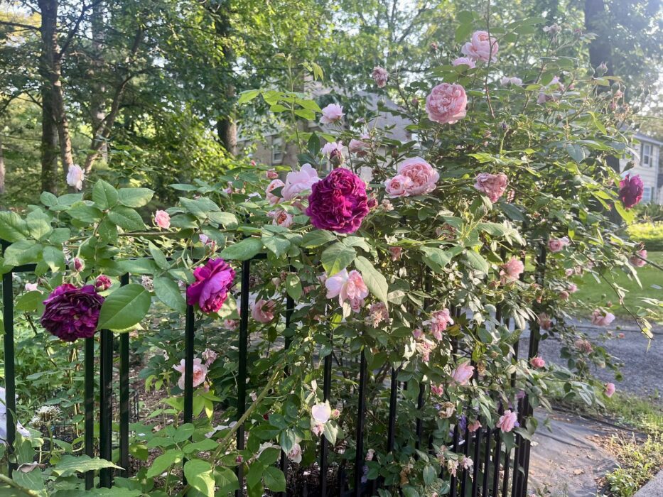 1. It can get rather large and rambling but also responds well to pruning (immediately after flowering.) The only issue I have with this rose is it’s propensity to get blackspot and defoliate. That being said, it never seems to stop it from growing–it just looks a bit unsightly. Hope this is helpful!