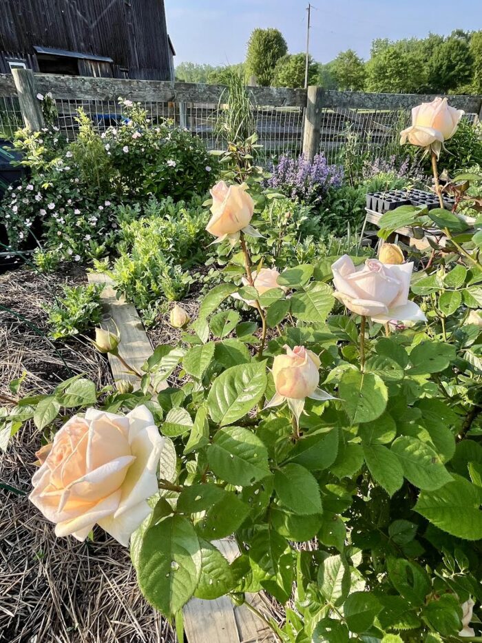 We’re in peak rose season in our two gardens right now. Although we have had day after day of heavy rains, which has browned the petals and caused a few of the roses to ball up, for the most part they’ve been a real treat. Happily, all this beauty has been a pleasant distraction from watching America’s Season Finale unfold in real time. (Yesterday was a wild ride, wasn’t it?) In case you need a peaceful moment, here are some photos from the past week in our home garden and allotment garden. Have a wonderful weekend, everyone!